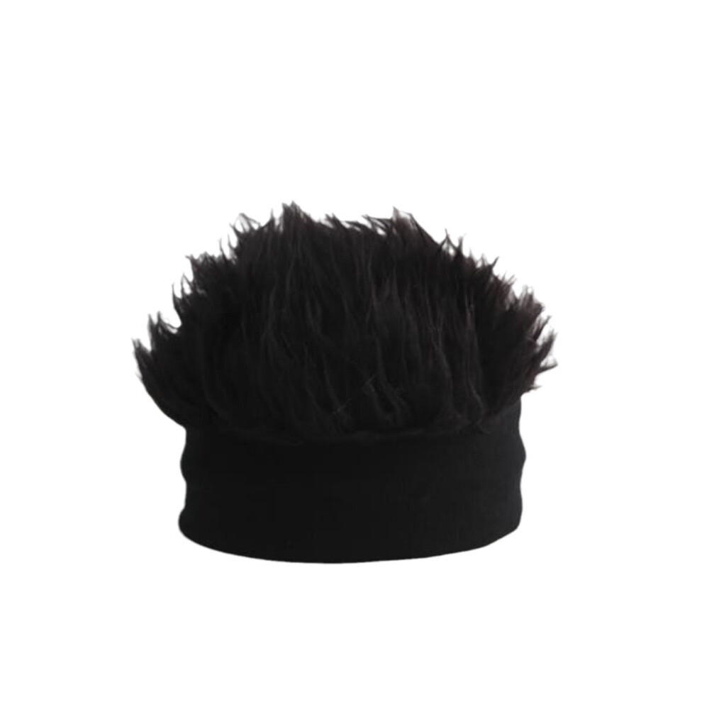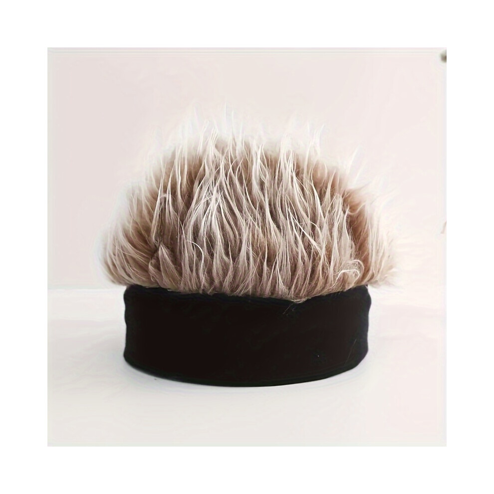 (Black Brown Fur) Sporty Short Hair Prank Hat with Gray Fluffy Wig, Black and White Headband for Fun Costume Party Accessory, Straight