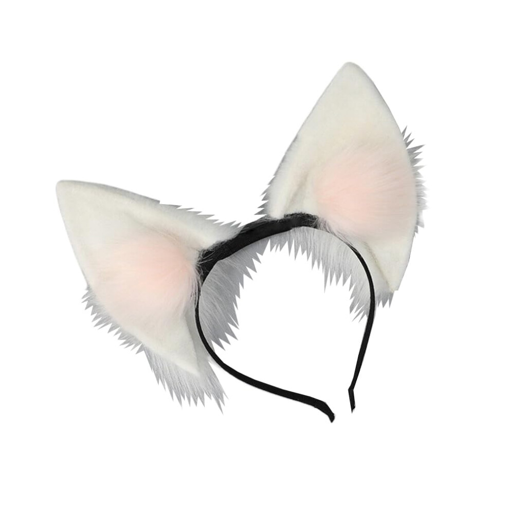 ILUFAM Furry Fox Wolf Cat Ears Headband Faux Fur Animal Ears Cosplay Party Costume Accessories Headwear (White)