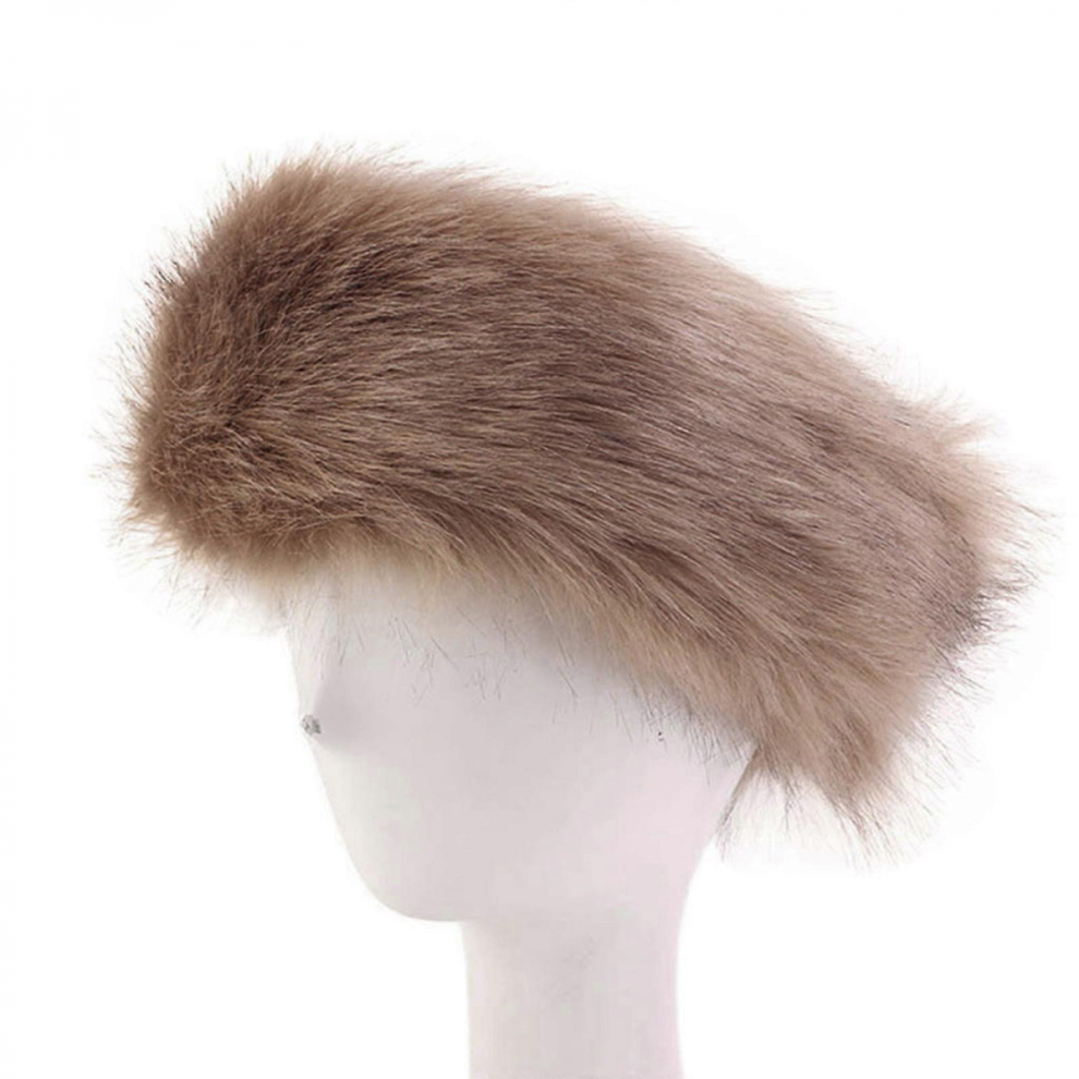 KhakiFluffy Winter Hat Faux Fur Headband Elastic Winter Ear Warmer Fashion Ski Hat Wide for Head Wrap Cold Outdoor Accessorie white