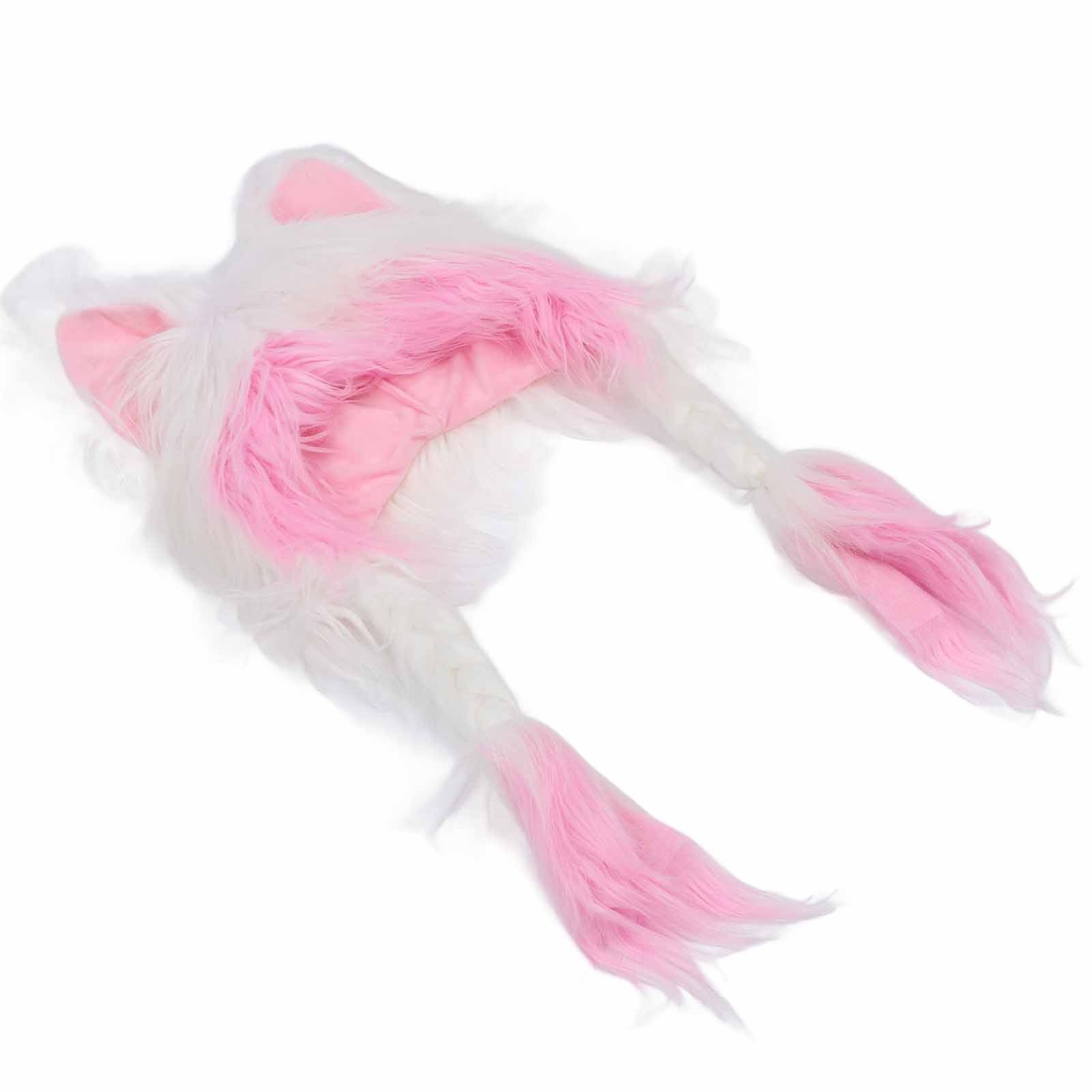 Proumhang 3 pcs Animal Ears Headband Tail Paw Glove Set,Fox Cat Cosplay Fancy Dress Accessory For Women,Halloween Plush Faux Fur Cosplay Adjustable Furry Fox Tail Costume For Kids & Adult White&Pink