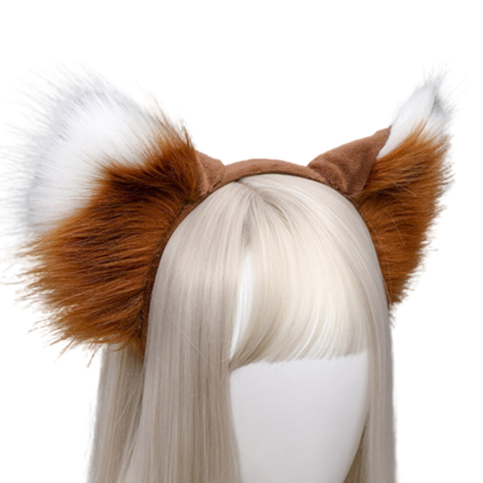 (Camel white) Handmade Wolf Fox Fur Ears Hairhoop Headwear Dress Party Halloween Christmas Costume Headband Hairband