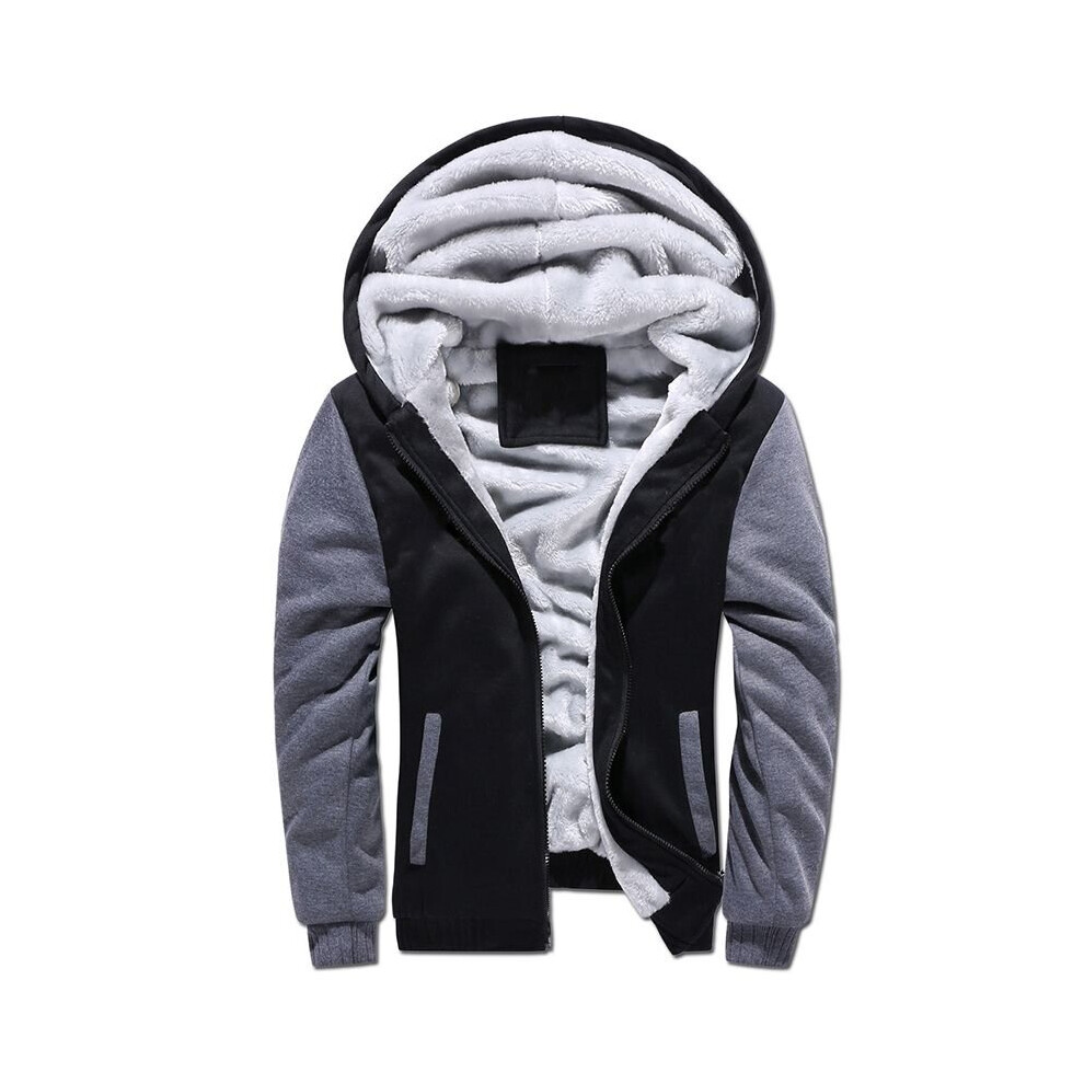 (BlackGray, L) Mens Winter Warm Thick Jacket Fleece Fur Lined Hoodie Zip Coat Sweatshirt Top