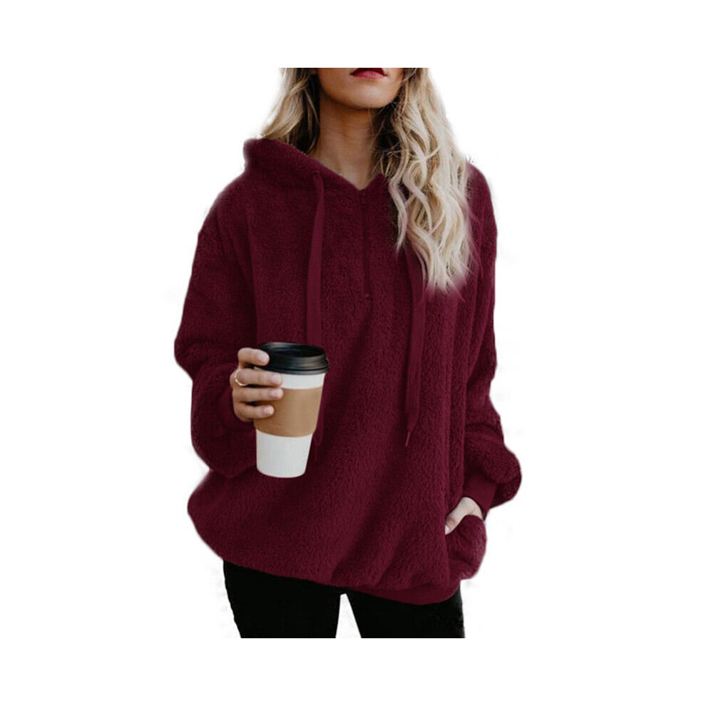 (Red Wine, XL) Women Winter Warm Fluffy Fur Sweatshirt Hoodie Jumper Coat Pullover Tops Hooded