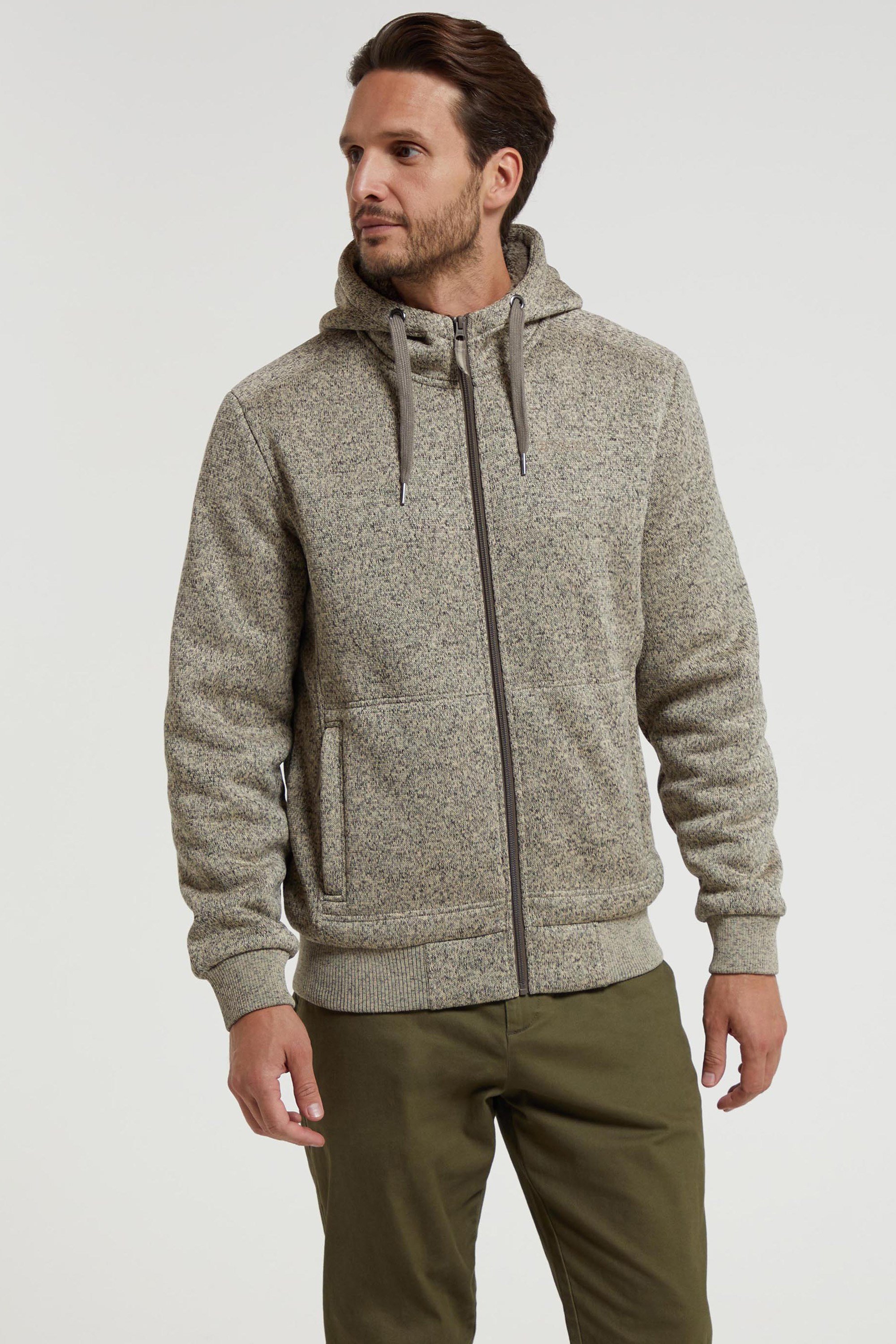 Mountain Warehouse Nevis Mens Fur Lined Hoodie - Soft Fleece Top, Warm, Comfortable, Adjustable Hood & Front Pockets Zip Up Hood – For Winter Walking & Jogging Dark Khaki XL