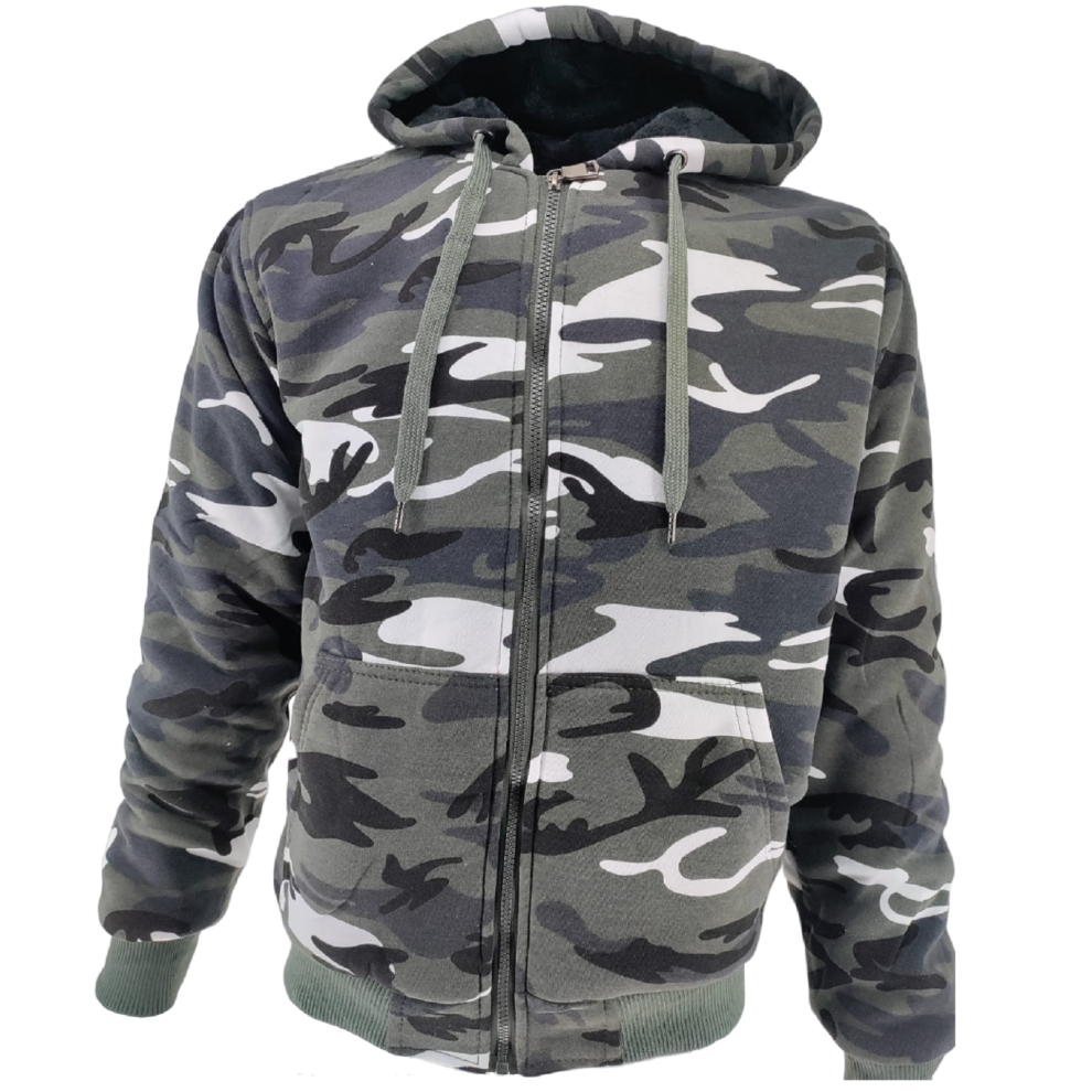 (Urban White/Black, 2XL) Mens Camouflage Hoodie Fur Lined Full Zip Men's Army Camo Hooded Winter Jacket