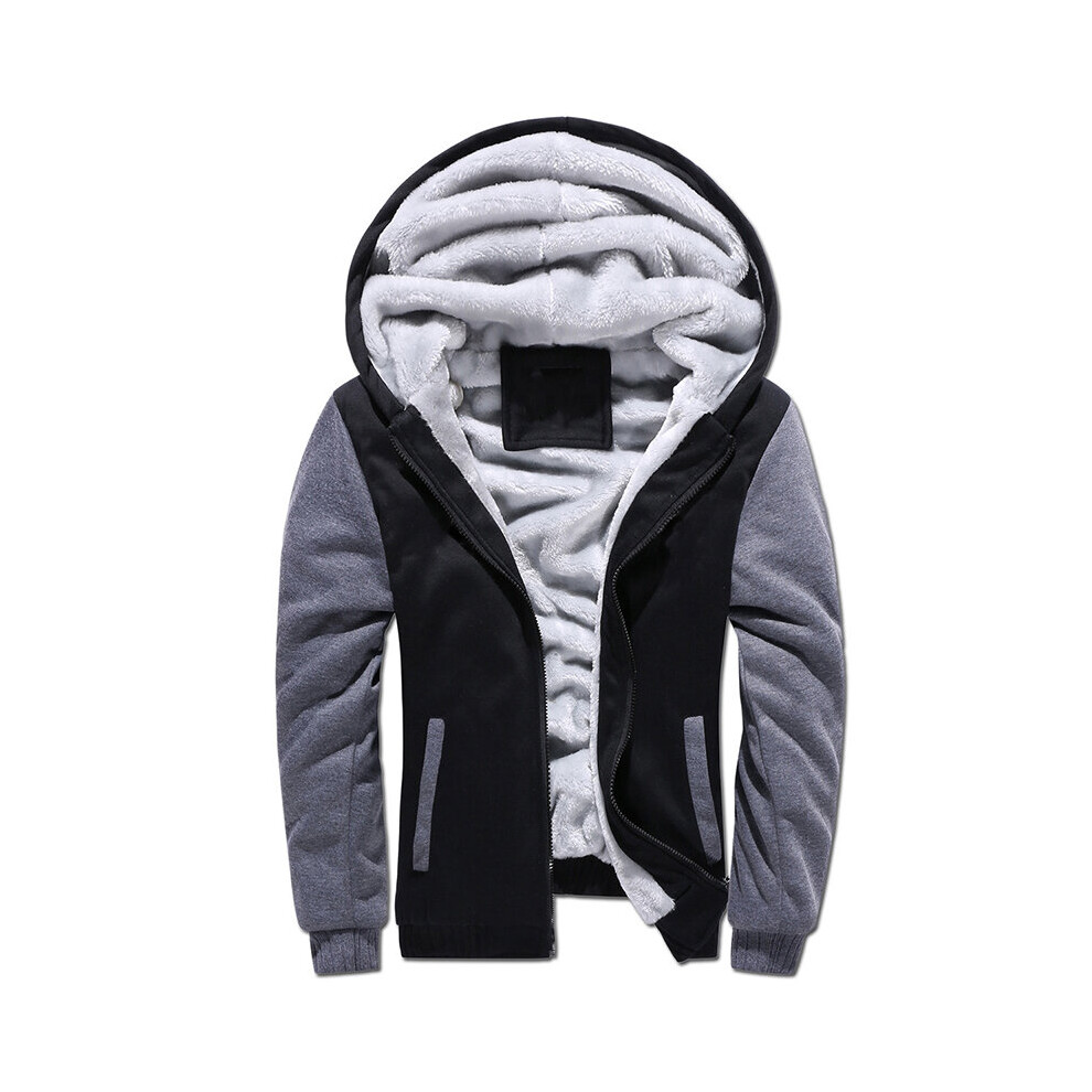 (BlackGray, L) Mens Thick Warm Fleece Fur Lined Hoodie Zip Up Winter Coat Jacket Top Sweatshirt
