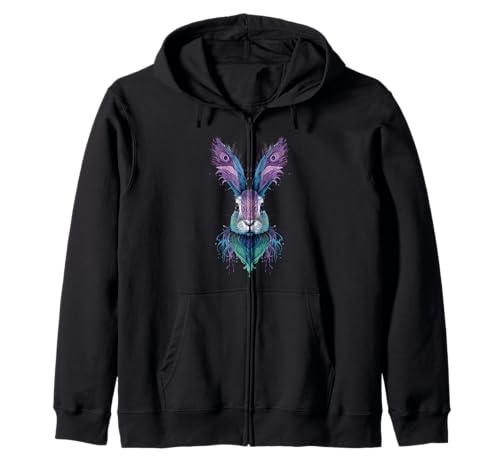 Feathered Rabbit Head Carrots Mystical Fur Easter Zip Hoodie