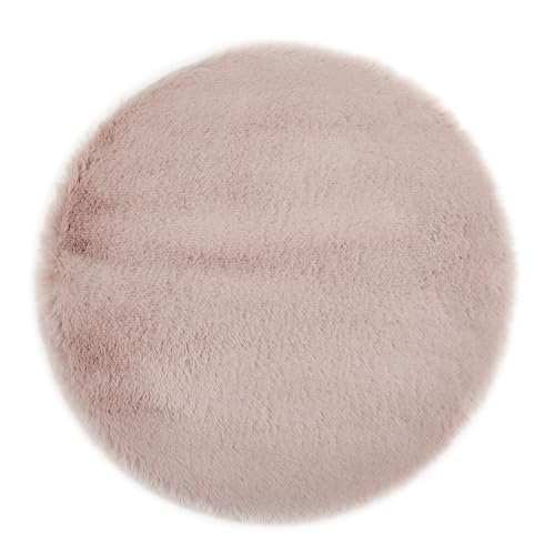SAYEYBU Round Rabbit Plush Rug for Bedroom Living Room Sofa, Faux Fur Fluffy Shaggy Circle Rug for Kids Teen Girls Room,Furry Carpet Circular Rug for Nursery Baby Room,Pink,90cm