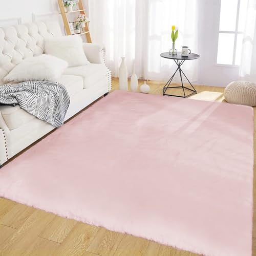 Latepis Pink Rugs for Bedroom Grils 120 * 180cm Washable Fluffy Non-Slip Rug Soft Faux Rabbit Fur Furry Rug for Living Room, Playroom, Nursery and Dorm