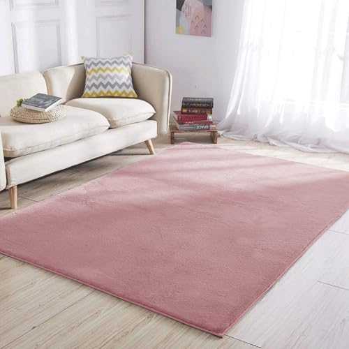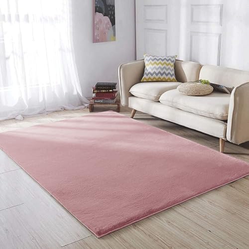 MOONLIGHT20015 Pink Rugs living Room 120 x 170 cm Anti Slip Washable Short Pile Area Rugs for Bedroom Faux Fur Bedside Rug Soft Large Rug for Dinning Room Kitchen Lounge