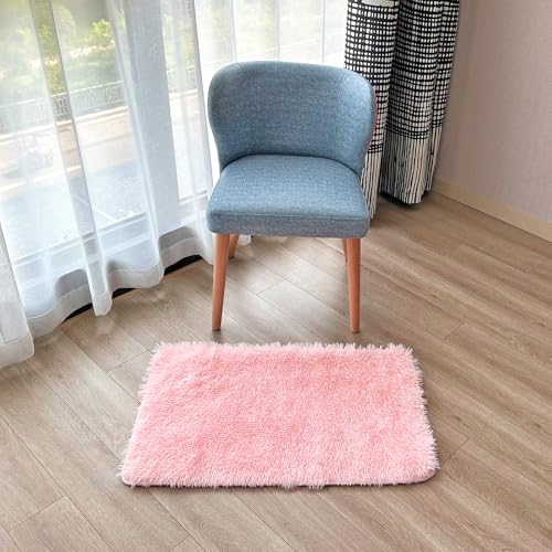 AUFELL Pink Fluffy Rug Soft Faux Fur Bedroom Carpet 23.62 x 35.43 inch,