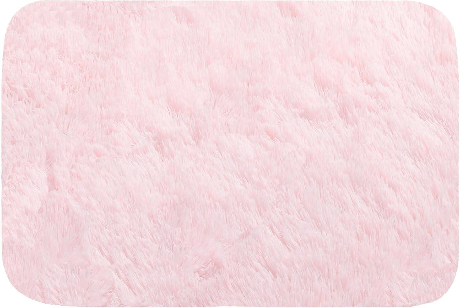 ConCus-T Pink Bath Mat Area Rug for Girls Bedroom Shag Faux Fur Girls Fluffy Tie Dye Rug Cute Furry Mat for Tub Living Room, Pink, 50 X 80cm