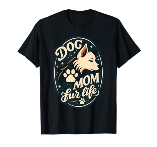 Dog Mom Fur Life Cute Puppy Print Retro Design Graphic T-Shirt