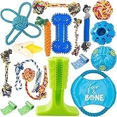 Fur & Bone Dog Chew Toys (18-Pack) - Puppy Toys for Boredom - Indestructible Rope & Squeaky Teething Toys for Small & Medium Dogs