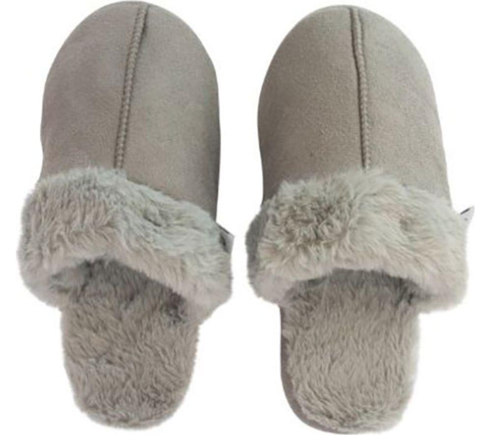 AROMA HOME Microwaveable Faux Fur Slippers - Grey, Silver/Grey