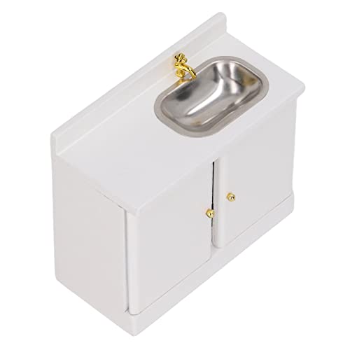 Exquisite Miniature Doll House Cabinet in a Scale 1:12 with a Sink, Structure, Smooth, Wooden Doll House Bathroom Furniture for Collectors and Enthusiasts