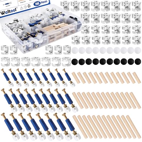 Waltool 285Pcs 3-in-1 Eccentric Wheels Kit, Furniture Cam Lock Fasteners with Dowel, Pre-Inserted Nut, Wood Dowel Pins, Screw Caps, Nut & Bolt Assortment Set Compatible with IKEA