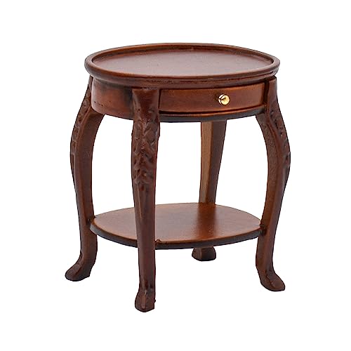 iLAND Neoclassical Dollhouse Furniture 1:12 Scale Dollhouse Wooden Collectibles, Carved Mini Side Table