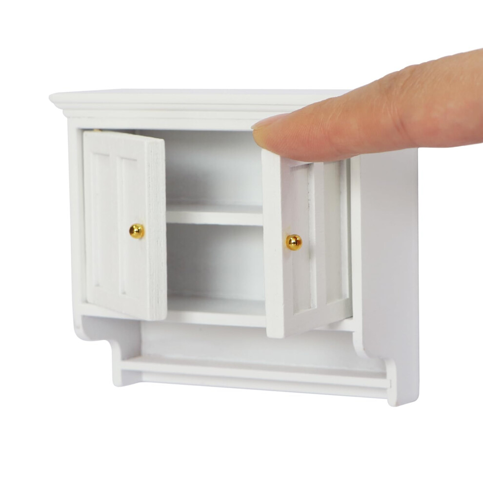 iLAND Dollhouse Furniture on 1/12 Scale Dollhouse Kitchen Cabinet Miniature Shelf in Modern Country Style White