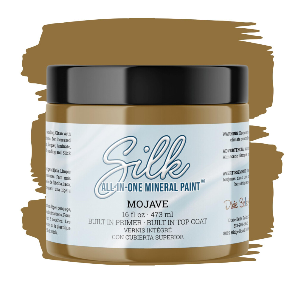 Dixie Belle Silk All-in-One Mineral Paint - Mojave (16oz) - Golden Brown Water Based Built-In Primer + Topcoat for Wood + Metal - Durable Furniture P