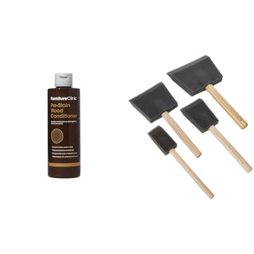 Furniture Clinic Pre-Stain Wood Conditioner - Water-Based - Indoor and Outdoor Use & Rustins Poly Foam Brushes - Professional Grade Paint Applicators for Smooth Finishes