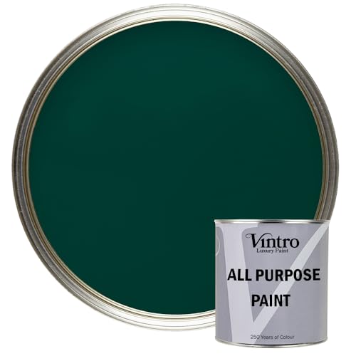 Vintro Paint - All Purpose Paint. Multi-Surface Matt Paint For Indoor/Outdoor Use. Wood, Walls, Doors, Cabinets, Metal, Plastic, Masonry, Furniture, Glass, Tiles, Radiators & Pipes. 250ml (Dark Green)