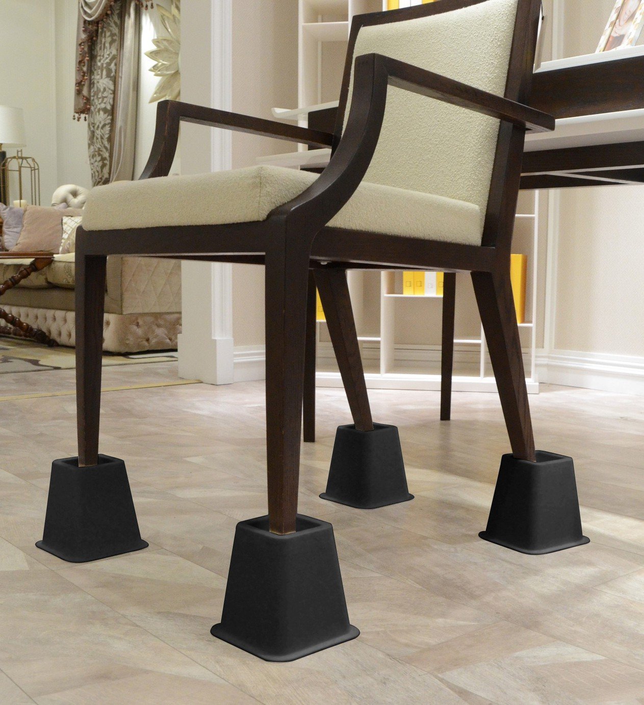 4 Pieces 3.3 Inch Bed Chair Sofa Riser Feet Lift Set, Under Bed Storage Heavy Duty Furniture Risers Sturdy Furniture Riser, Stable Riser Feet Lift Set for Desk Chair Bed Black(10.5*10.5*8.5cm)