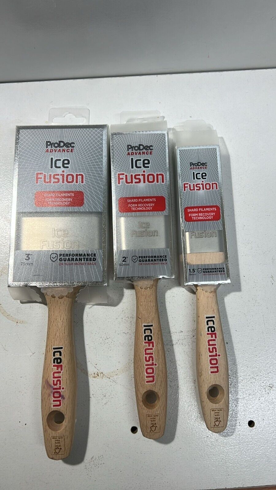3 set ProDec Advance Ice Fusion Synthetic Paint Brush FSC Wood 1.5” 2” 3” shard