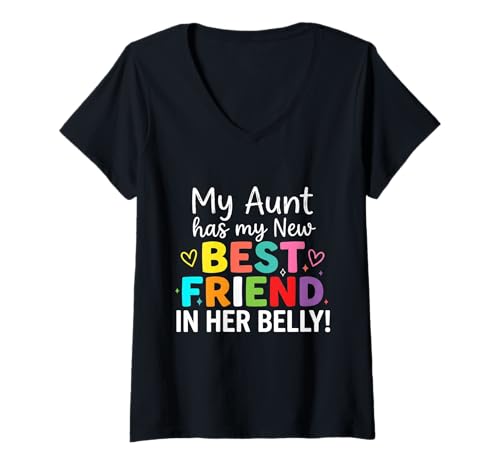 Women's My Aunt has My New Best Friend in her Belly Funny Mom Cousin V-Neck T-Shirt