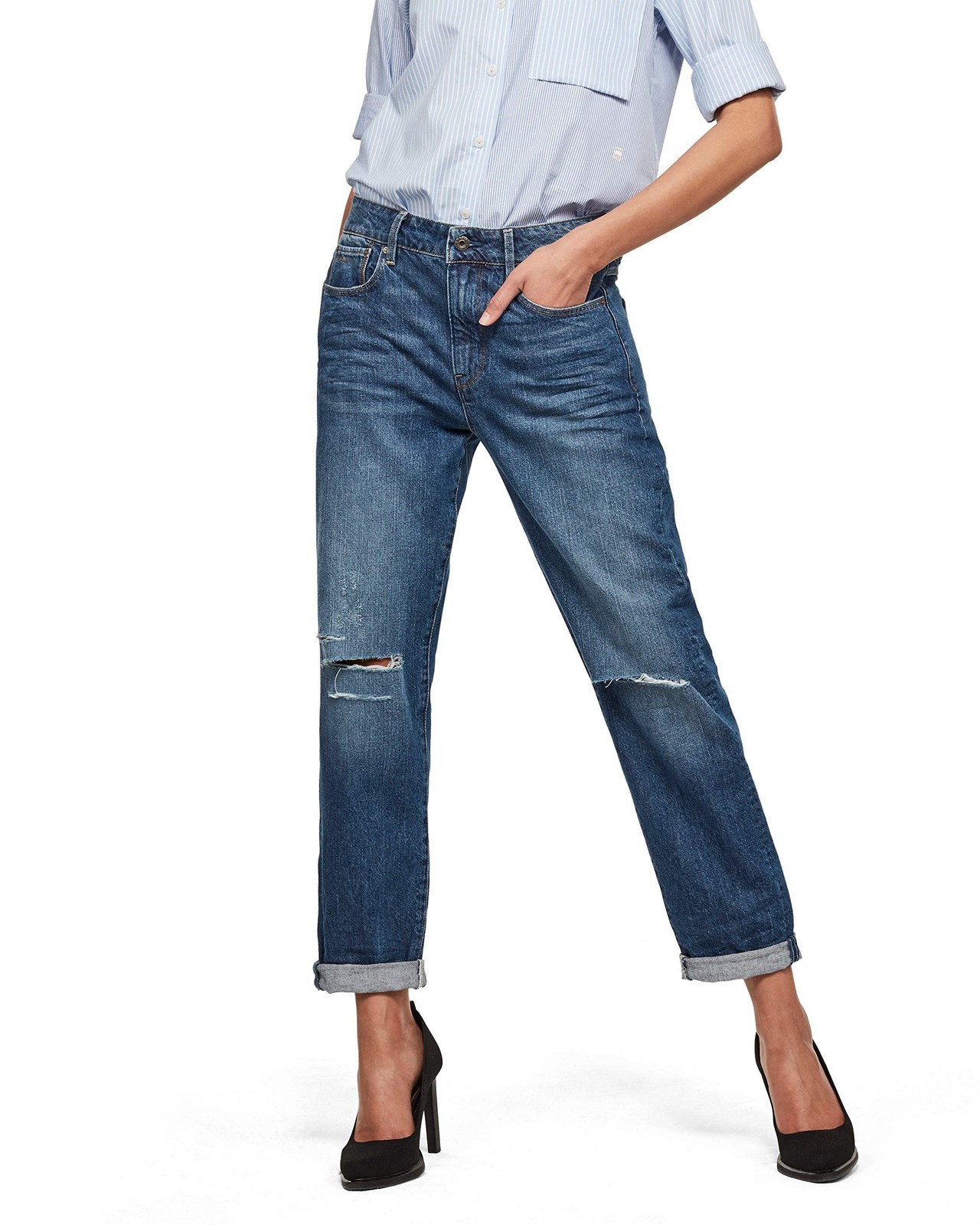 G-Star women's jeans 3301 Saddle Mid Boyfriend Wmn medium aged ripped blue...