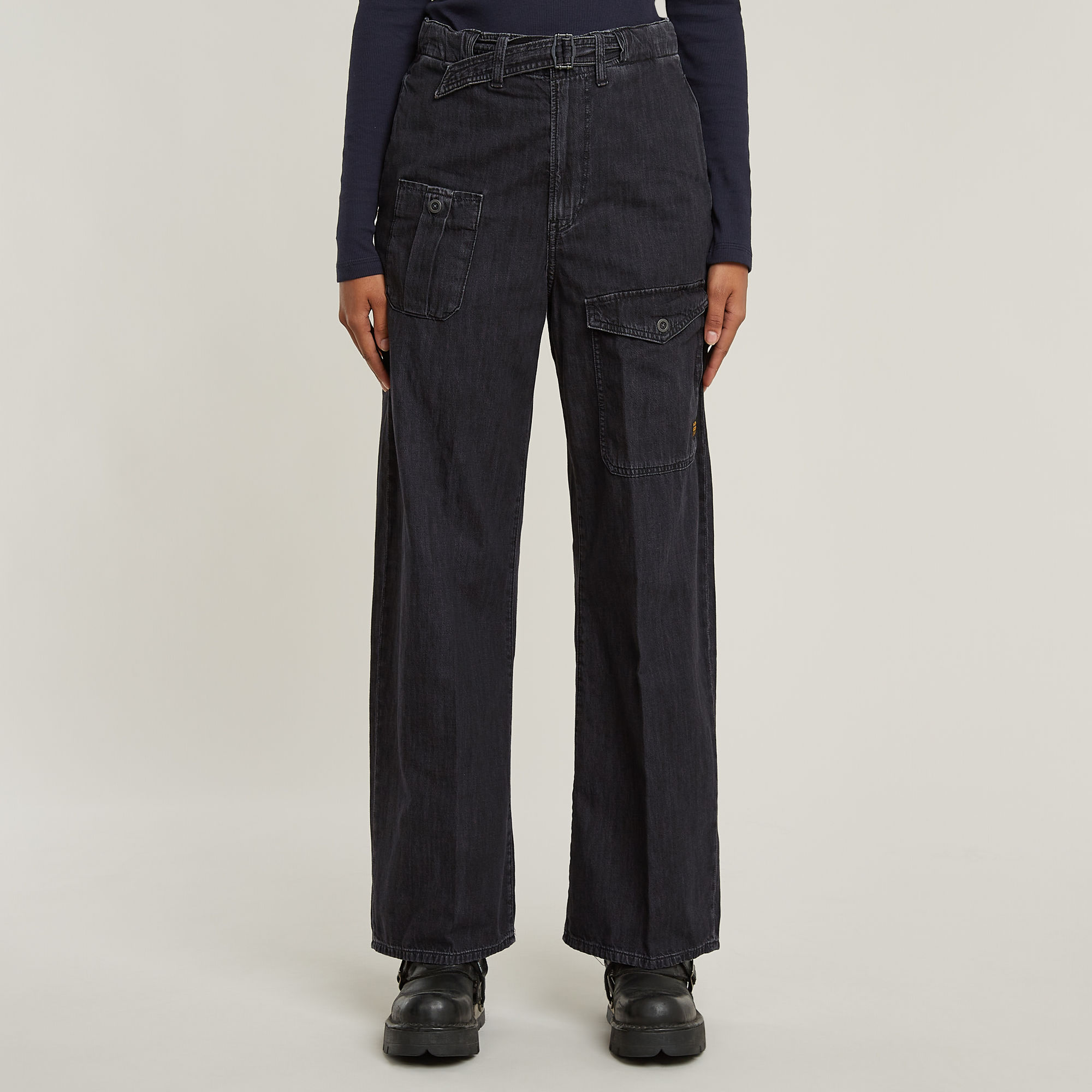 G Star Raw Womens G-Star RAW Belted Cargo Loose Jeans - Black Cotton - Size 24W/30L