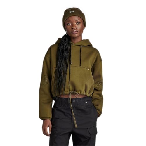 G-Star Women's Sleeve Graphic Cropped Loose Hoodie, Green (dark olive D23888-D425-C744), M