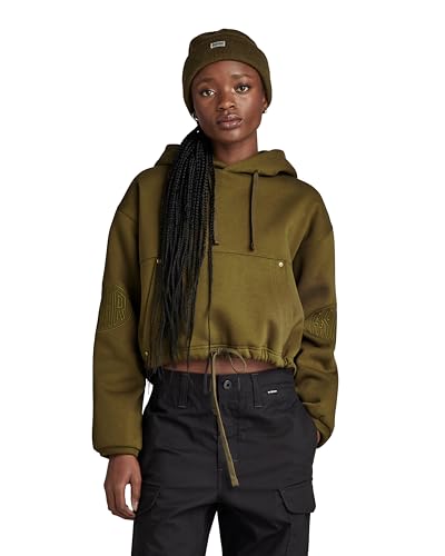 G-Star Women's Sleeve Graphic Cropped Loose Hoodie, Green (dark olive D23888-D425-C744), S