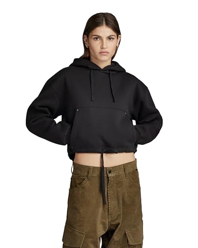 G-Star Women's Sleeve Graphic Cropped Loose Hoodie, Black (dk black D23888-D425-6484), L