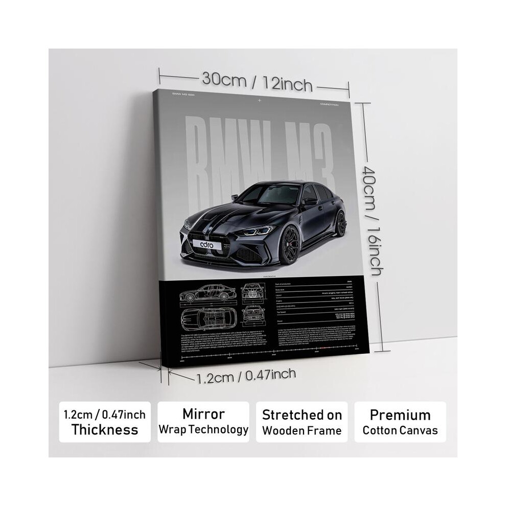 (Tesla Model 3 Performance=9407) Canvas Print DIY Framed Kit Wall Art for Living Room Bedroom Retro Farmhouse Decor 16x20 inch