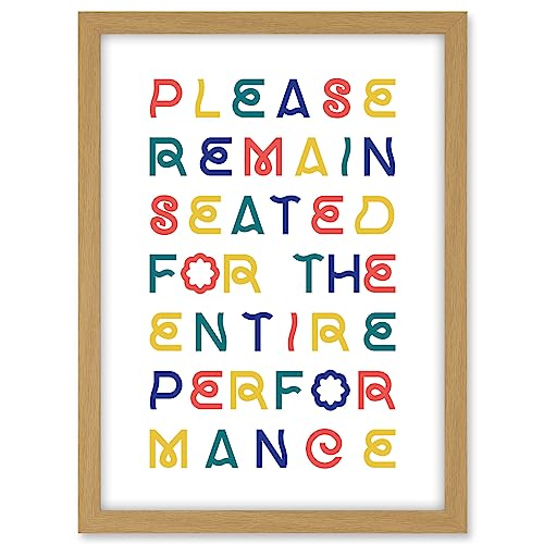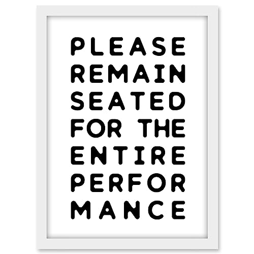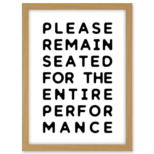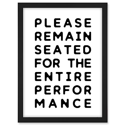 Artery8 Funny Toilet Wall Art Please Remain Seated Entire Performance Bathroom Sign Decor Artwork Framed A3 Wall Art Print