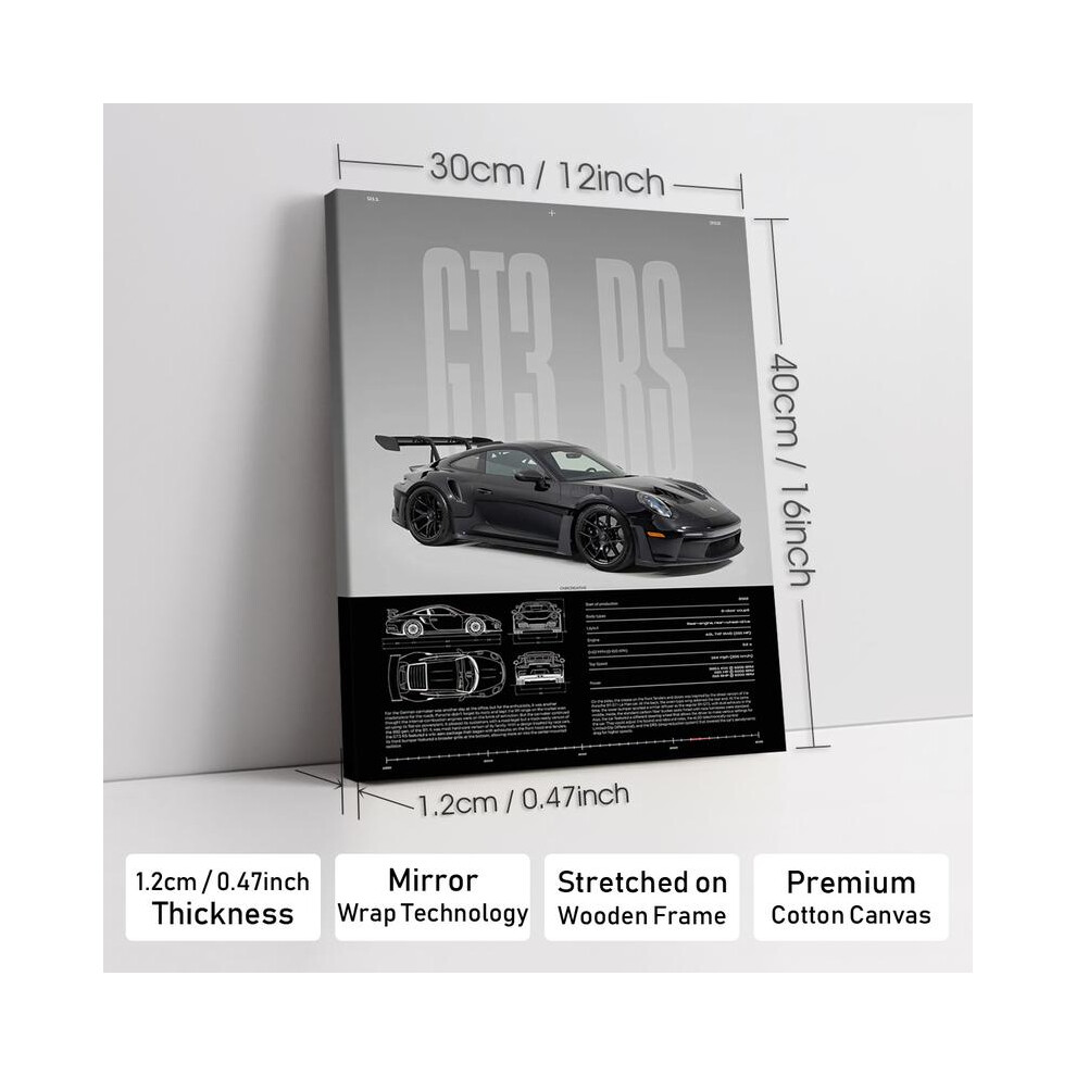 (12X16inch(Framed)-I1, Multicolor) Wooden Framed Canvas Painting, Vehicle Art High-performance GT3 RS Model Specification Poster, Living Room Bedroom