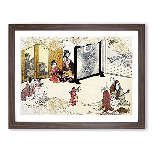 Seeing A Performance By Kitagawa Utamaro Asian Japanese Framed Wall Art Print, Ready to Hang Picture for Living Room Bedroom Home Office Décor, Walnut A3 (46 x 34 cm)