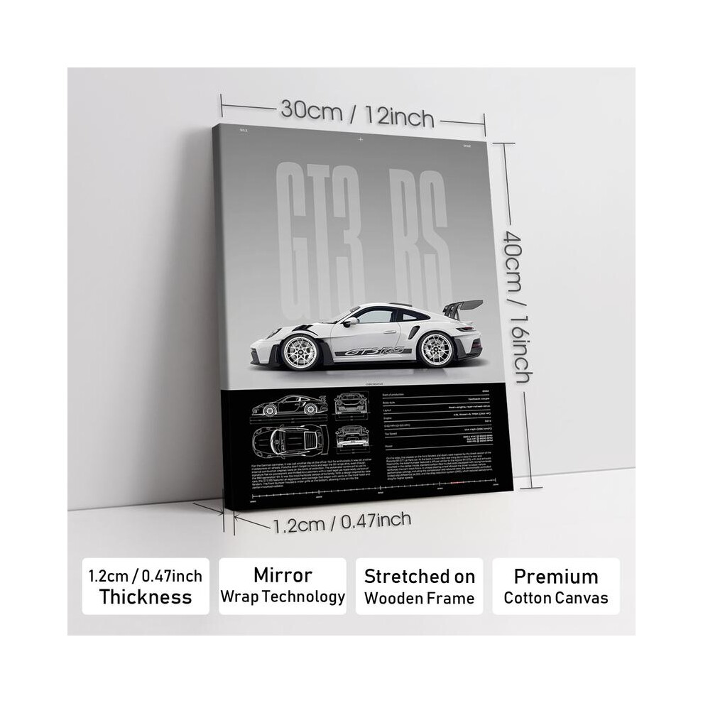 (12X16inch(Framed)-X, Multicolor) Wooden Framed Canvas Painting, Vehicle Art High-performance GT3 RS Model Specification Poster, Living Room Bedroom