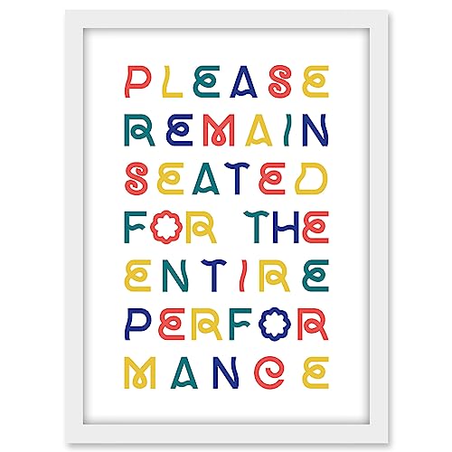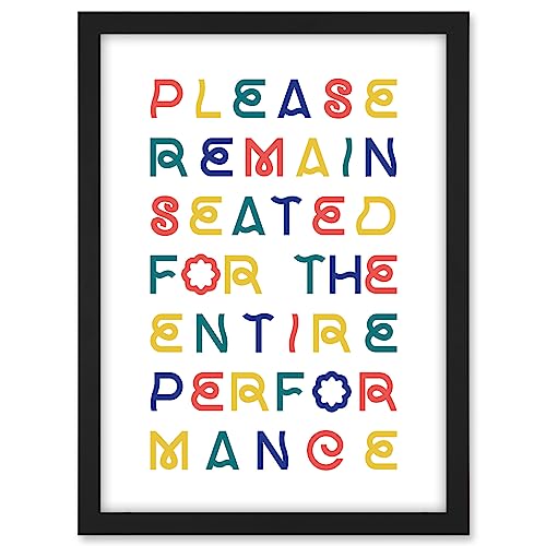 Artery8 Funny Bathroom Wall Art Please Remain Seated Entire Performance Toilet Sign Bathroom Decor Artwork Framed A3 Wall Art Print