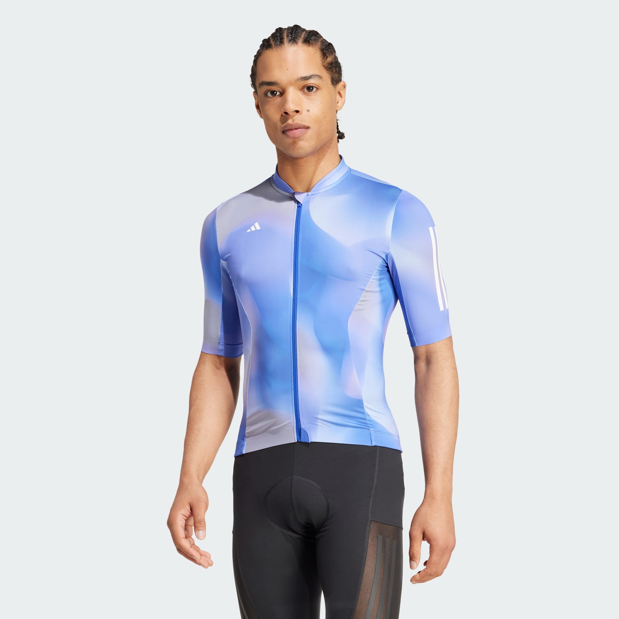 adidas Performance Mens Tempo 3-Stripes Nature Art Cycling Jersey - Medium Blue Recycled Material - Size X-Large