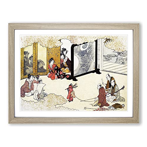 Seeing A Performance By Kitagawa Utamaro Asian Japanese Framed Wall Art Print, Ready to Hang Picture for Living Room Bedroom Home Office Décor, Oak A3 (46 x 34 cm)