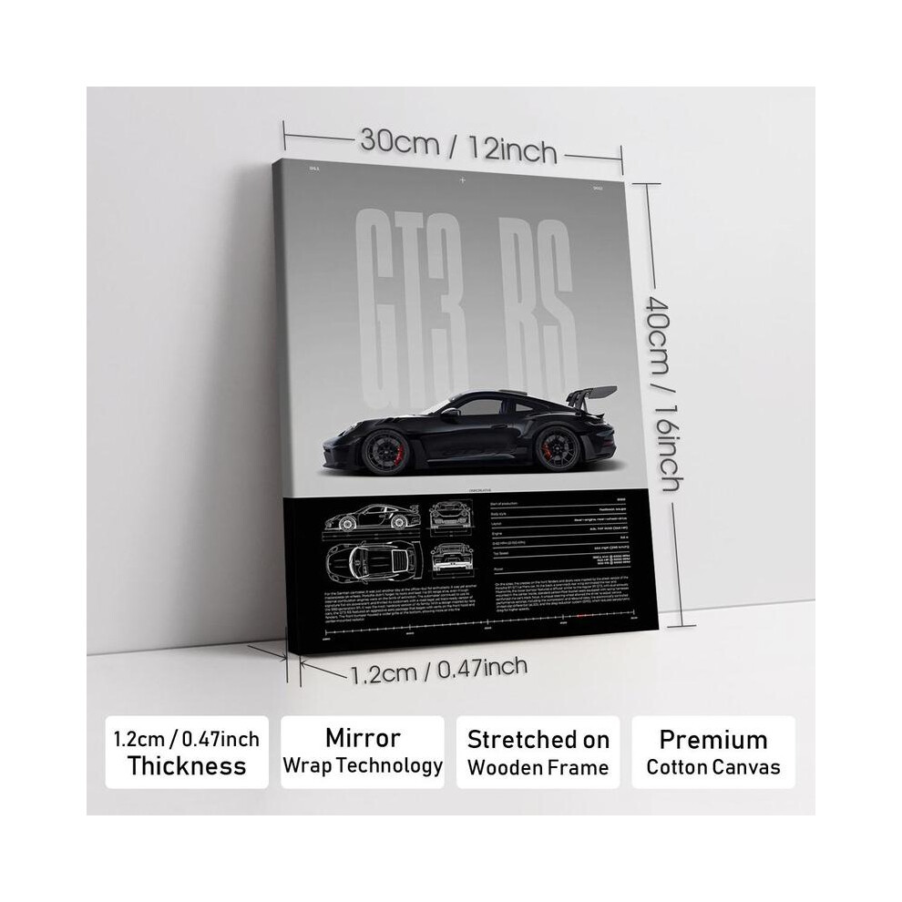 (12X16inch(Framed)-I, Multicolor) Wooden Framed Canvas Painting, Vehicle Art High-performance GT3 RS Model Specification Poster, Living Room Bedroom
