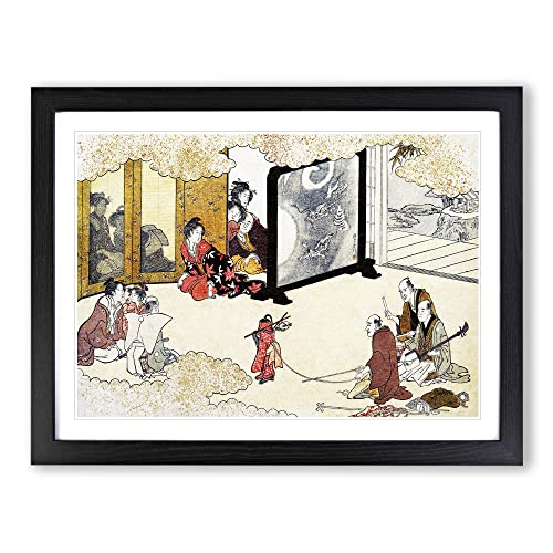 Seeing A Performance By Kitagawa Utamaro Asian Japanese Framed Wall Art Print, Ready to Hang Picture for Living Room Bedroom Home Office Décor, Black A3 (46 x 34 cm)