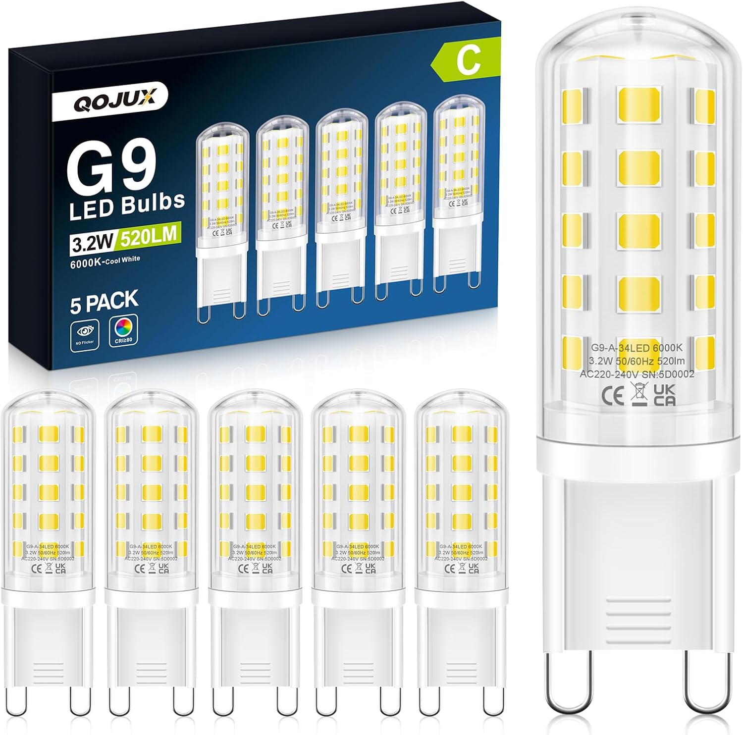 G9 (GU9), Dimmable, Cool white (4000K-6000K), LED (Light emitting diode)