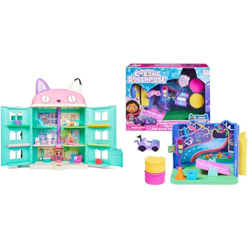 Gabby's Dollhouse, Purrfect Dollhouse with 2 Toy Figures, 8 Furniture Pieces, 3 Accessories & Carlita Purr-ific Play Room with Carlita Toy Car, Accessories, Furniture and Dollhouse Deliveries