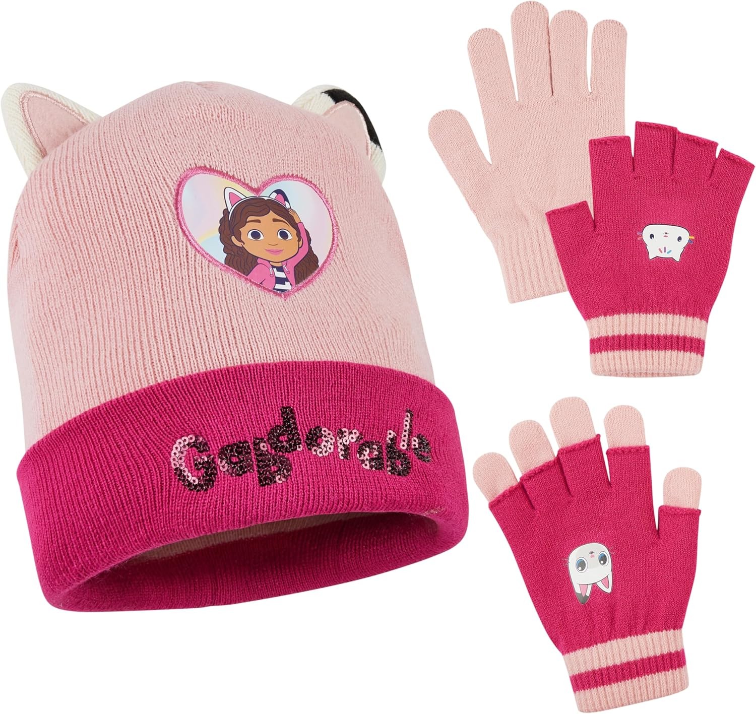 Gabby's Dollhouse Girls Winter Accessories Set Beanie Hat and Gloves Girls Gift