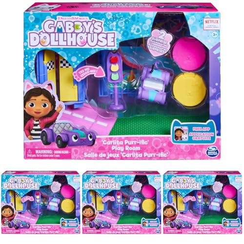 Gabby’s Dollhouse, Carlita Purr-ific Play Room with Carlita Toy Car, Accessories, Furniture and Dollhouse Deliveries, Kids’ Toys for Ages 3 and up (Pack of 4)