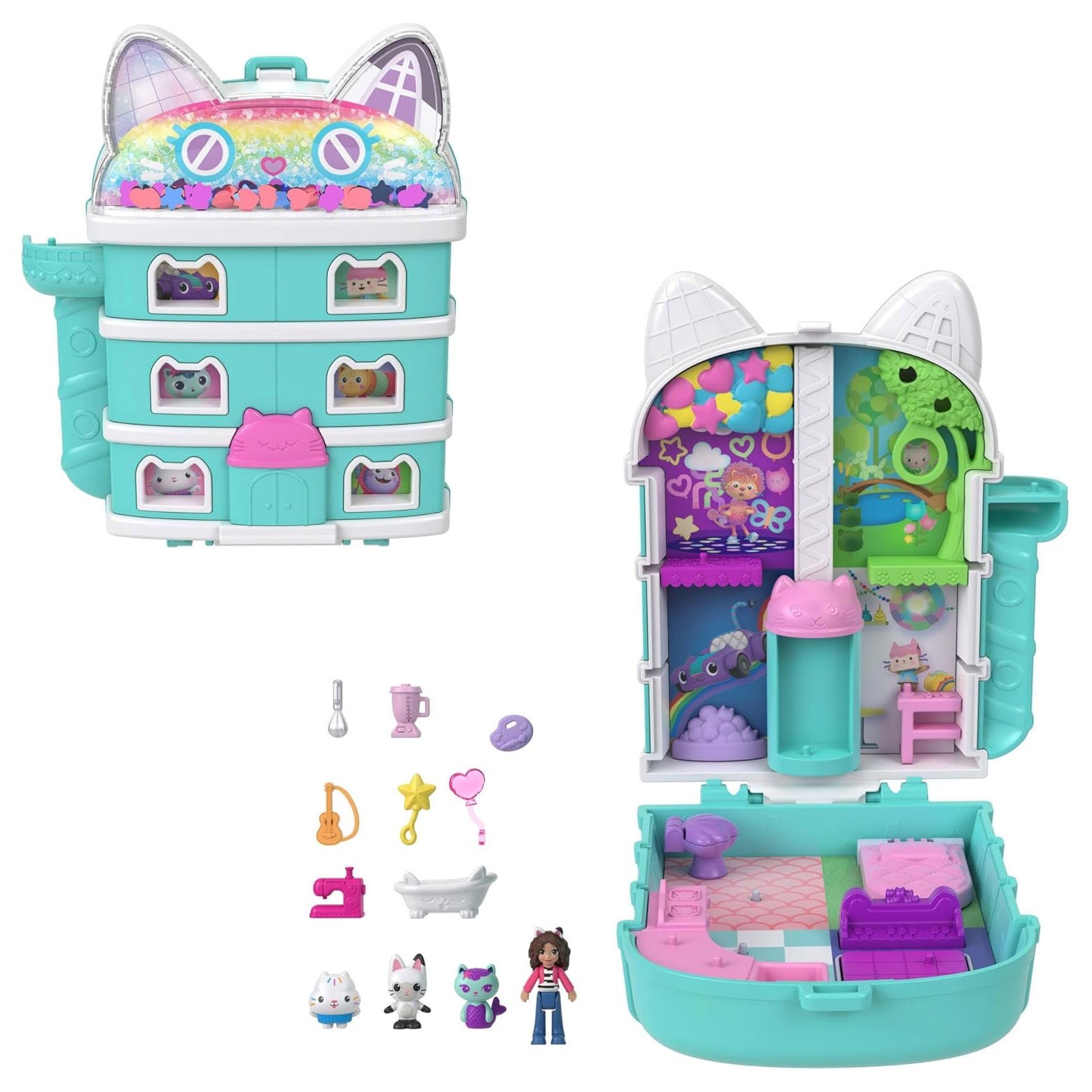 Polly Pocket x Gabby’s Dollhouse Compact, Micro Dolls and Playset, Multicolor