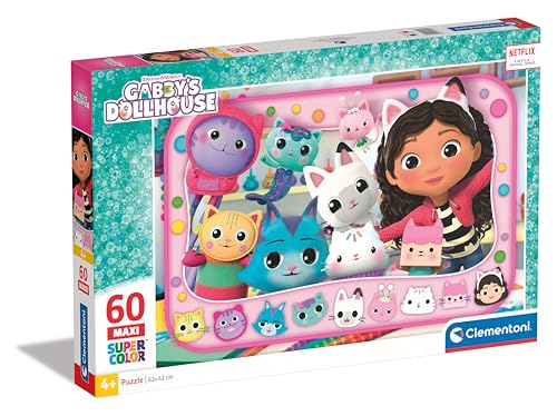 Clementoni Jigsaw Puzzle Gabby'S Dollhouse 60 Maxi Pieces - Supercolor Puzzle For Children 4-6 Years, Cartoon, Gift For Boy/Girls, Doll, Puzzle For Kids, Made In Italy, 26598